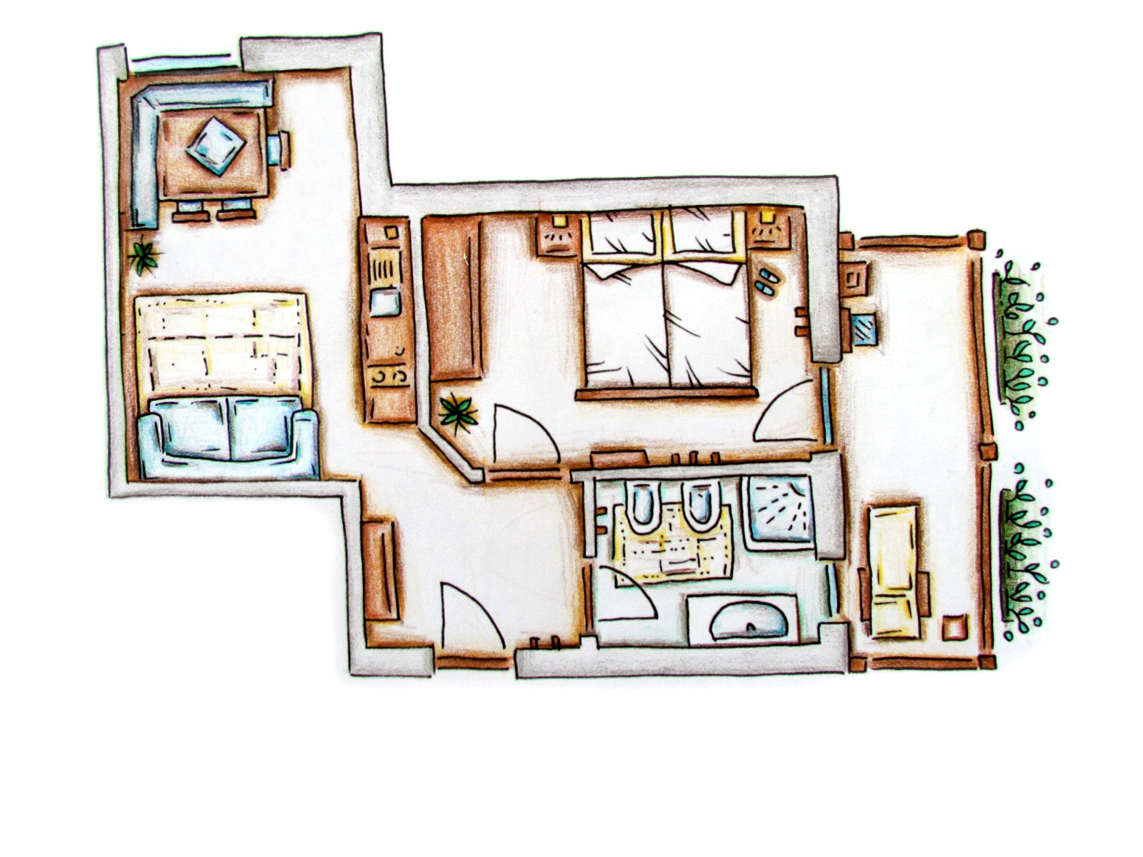 - -Eine Wohnküche mit allem Komfort. Ein großer Esstisch, eine Küchenzeile und viel Stauraum für Lebensmittel. Der Zugang auf dem Balkon und großen Fenster machen das Appartement zu einem lichtdurchfluteten Urlaubsort.